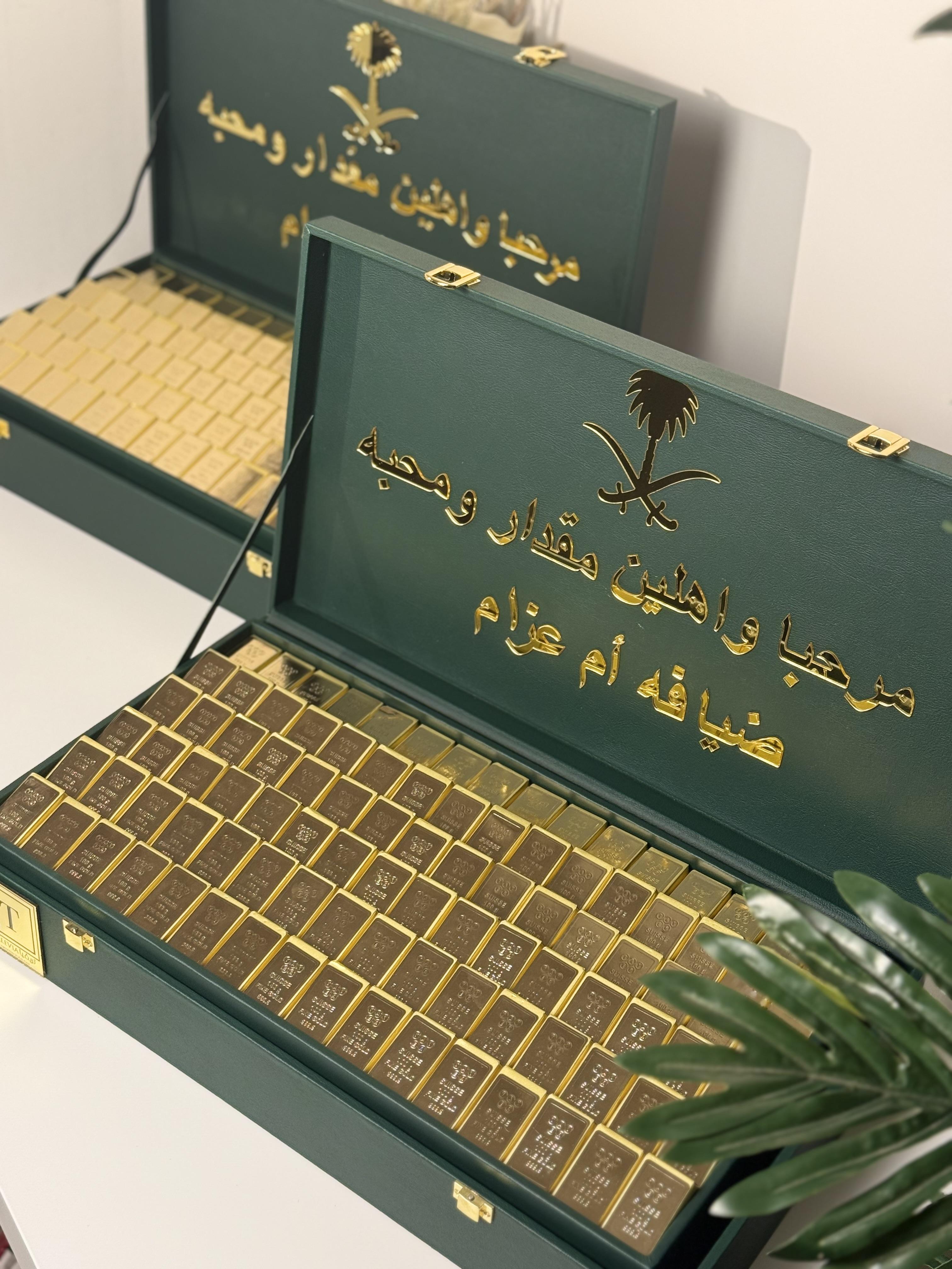 6 شنط شوكلاته السبائك الذهبيه تحتوي على 576 قطعه شوكلاته بلجيكيه مغلفه بحشوات متنوعه ( حشوه كنافه البستاشيو الايطاليه. توفي بلجيكي. لوتس وبيكان مكرمل. كيندر وبندق محمص )