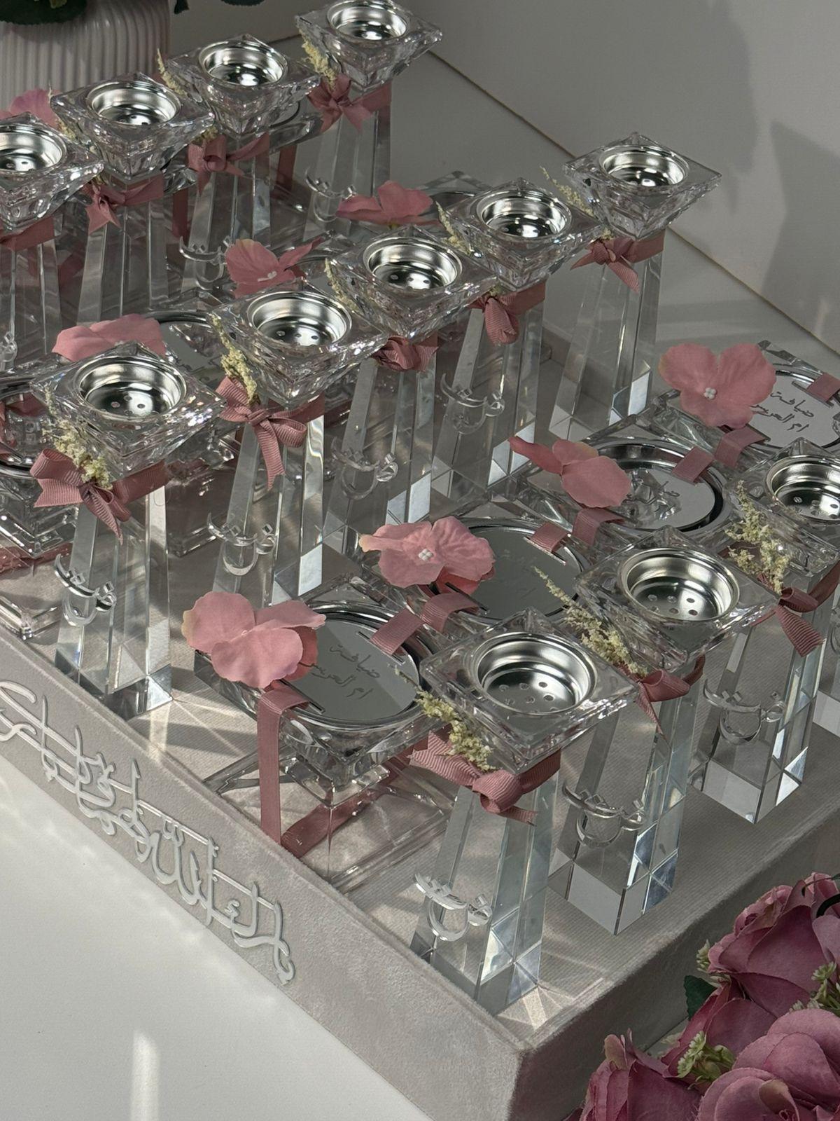 30 قطعه من المباخر الكرستال اللامع مع إضافه اسماء العروسين واختيار لون التنسيق